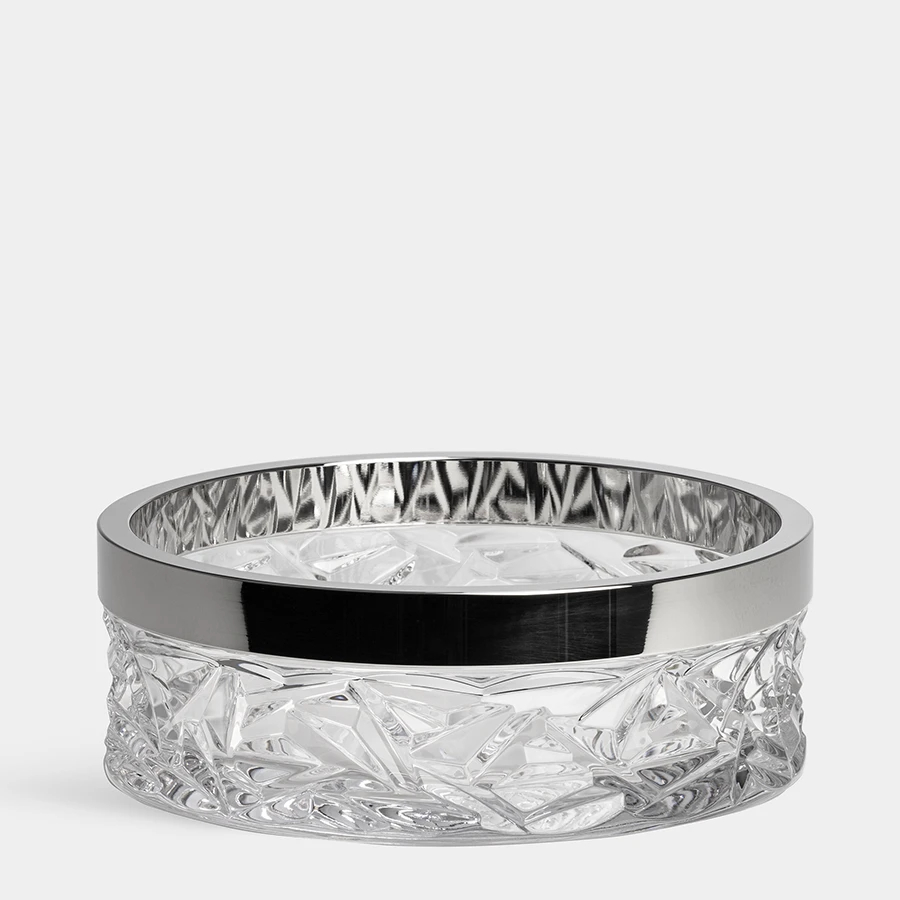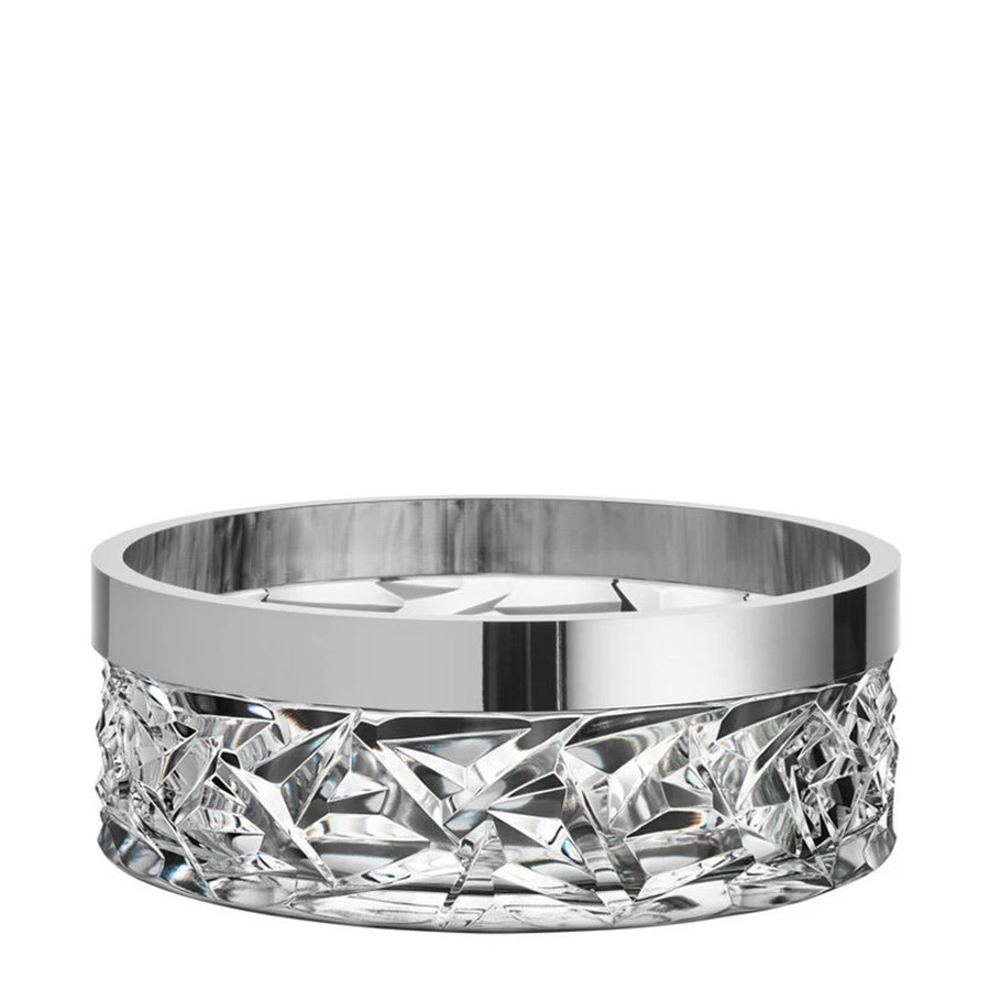 The Carat collection is based on a contemporary interpretation of the traditional cut glass for which Orrefors is world-renowned. The irregular geometry produces beautiful reflections of light in the crystal bowl and provides a clear contrast to the polished metal rim at the top. Designed by Lena Bergström.