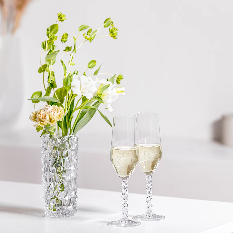 The Carat collection is based on a contemporary interpretation of the traditional cut glass for which Orrefors is world-renowned. The small vase is covered with the collection’s characteristic asymmetrical motif, which produces beautiful reflections of light in the crystal. The vase is ideal for garden flowers or a few stems of wild greenery. Designed by Lena Bergström.