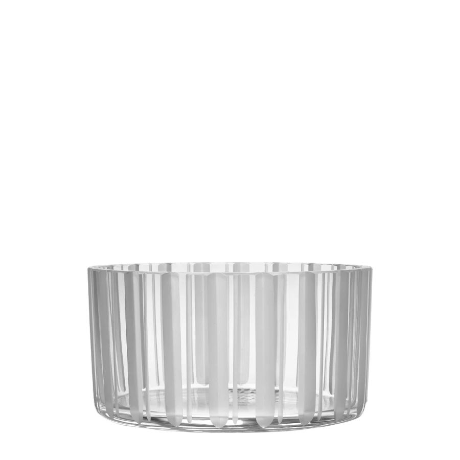 The small bowl with a stripe motif in the Cut In Number collection from Orrefors is ideal as a serving bowl or simply as a decorative object. The satin finished cuts on the bowl beautifully emphasize the transparency of the clear crystal. Designed by Ingegerd RÃ¥man.