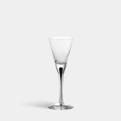 Intermezzo Snaps from Orrefors was designed in 1984. The glass, which holds 2 oz, is ideal for serving spirits. Intermezzo Snaps is mouthblown in Sweden by expert glassblowers and has a drop of blue sealed inside the stem – an innovation based on traditional craftsmanship. Designed by Erika Lagerbielke.