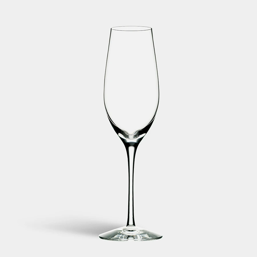 Merlot Champagne from Orrefors is a mouth-blown flute glass that holds 9.5 oz. It is outstanding for sparkling wines like Champagne, Prosecco, and Crémant with its tall, narrow bowl, which preserves the bubbles in the beverage. Designed by Erika Lagerbielke.