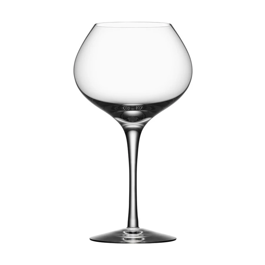 More Mature from Orrefors, available as a set of 4, holds 16 oz and enhances the round, full aromas of red wine. Therefore, the stemware glass is intended for red wines with mature notes, whose fragrance and flavor emerge best in a low, slightly wider bowl. Designed by Erika Lagerbielke.