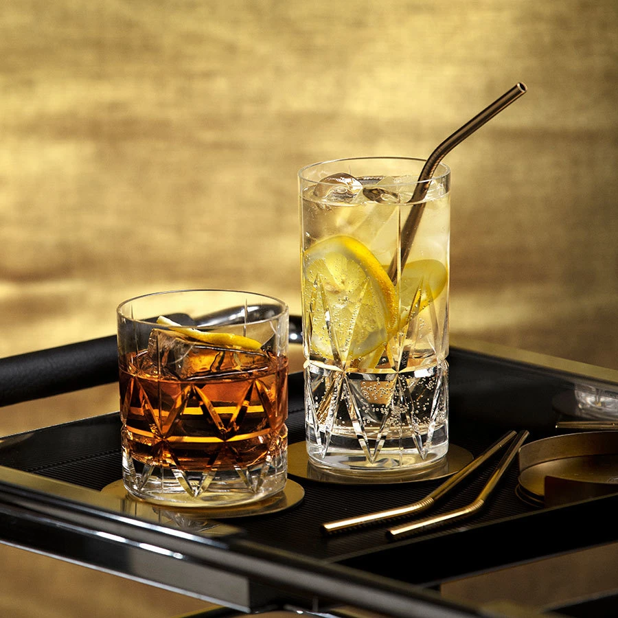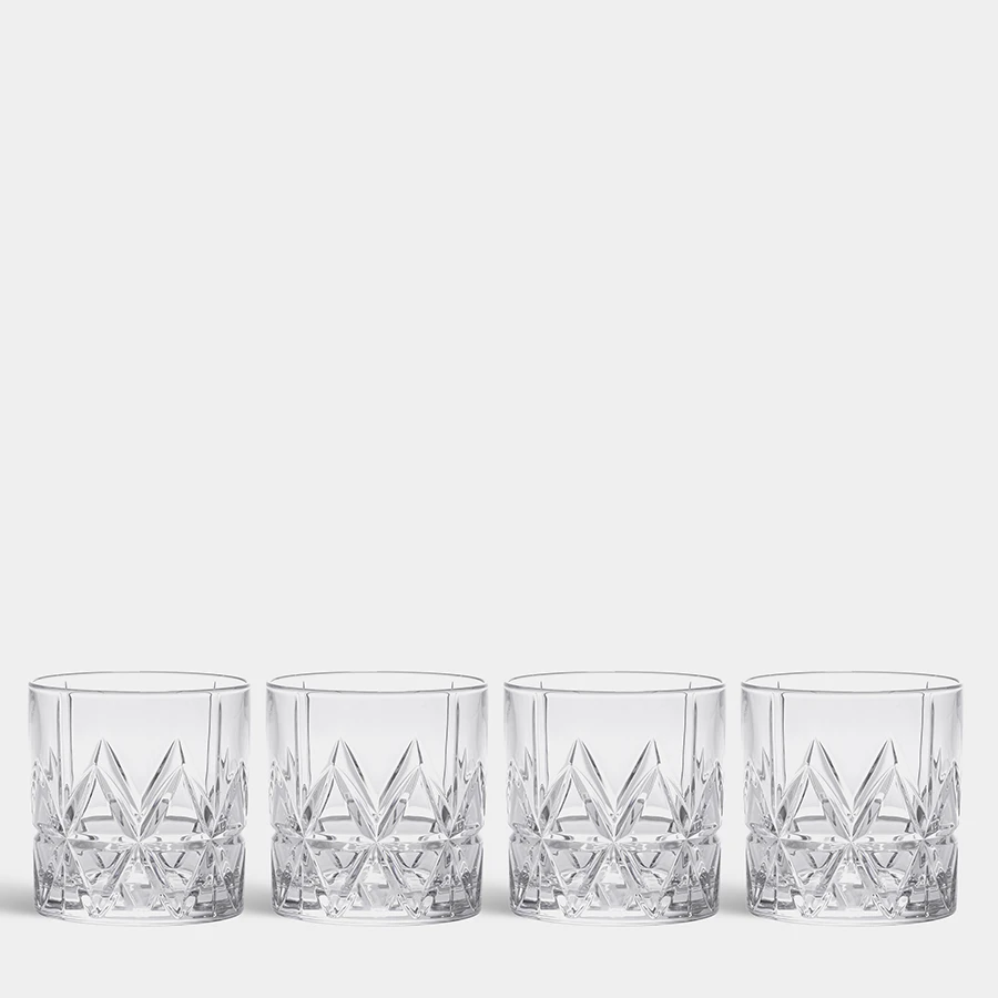 Peak Double Old Fashioned from Orrefors, available as a set of 4, holds 11.5 oz and is an ideal bar glass for spirits and cocktails. The motif on the glass is inspired by the majestic mountain peaks from the northern regions of Scandinavia. Designed by Martti Rytkönen.