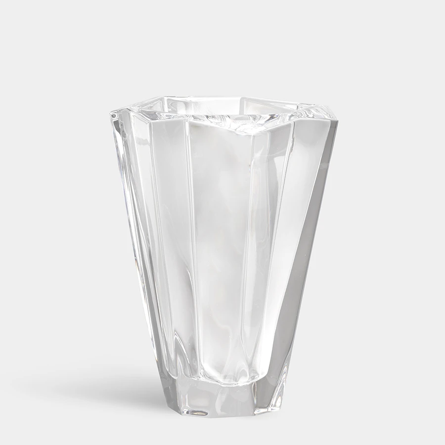 Precious Vase from Orrefors has an asymmetrical design that beautifully refracts the light reflected in the thick crystal. The small vase is a decorative centerpiece delivering an elegant feel to the home. Complement it with a bouquet of choice. Designed by Malin Lindahl.