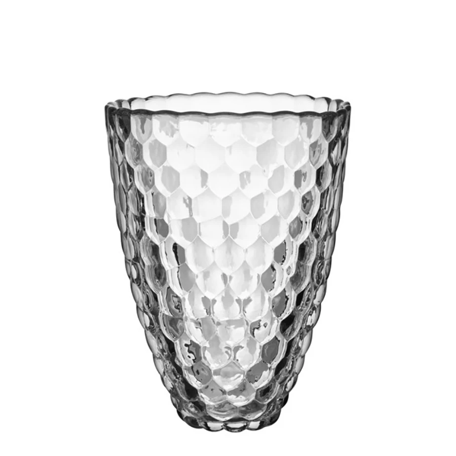 Raspberry is a beloved Orrefors classic. The large vase in clear crystal has a design resembling a raspberry with its round ‘drupelets’ giving it a soft look. The vase is perfect for long stem flowers or simply as a decorative object on its own. Designed by Anne Nilsson.