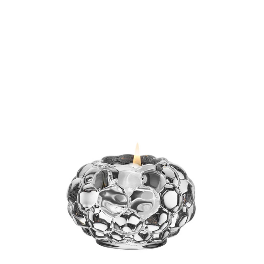 Raspberry is a beloved Orrefors classic. The small candle holder in clear crystal has a design resembling a raspberry with its round ‘drupelets’ giving it a soft look. It is a beautiful item suitable for tealight candles. Designed by Anne Nilsson.