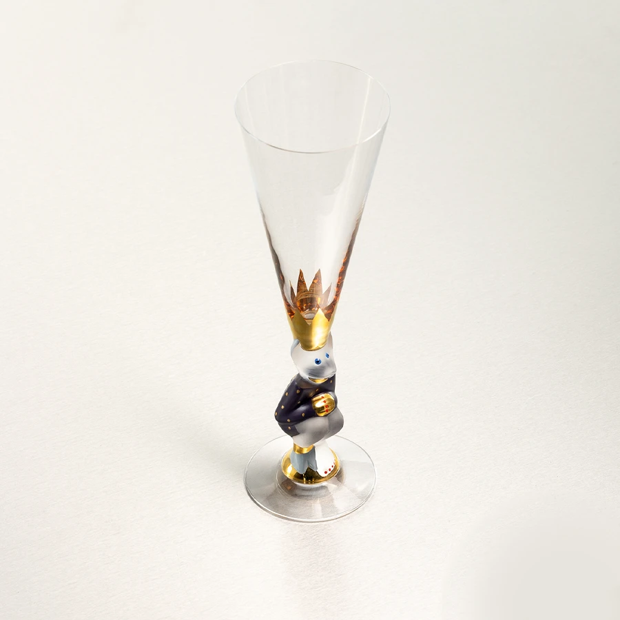 Gunnar Cyrén was the talented designer behind the Nobel collection. In 2013, his sons found several sketches of never launched champagne glasses inspired by the snaps glasses in the Nobel collection from Orrefors. The selected design has resulted in glasses in several colorways. The Sparkling Devil is mouth-blown in Sweden and hand-painted with real 22-karat gold.