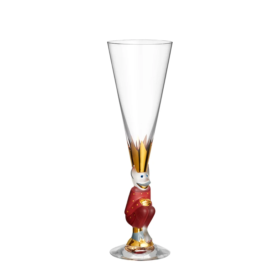 Gunnar Cyrén was the talented designer behind the Nobel collection. In 2013, his sons found several sketches of never launched champagne glasses inspired by the snaps glasses in the Nobel collection from Orrefors. The selected design has resulted in luxurious stemware glasses in different color variations. The Sparkling Devil in red, which holds 6.5 oz, is mouth-blown in Sweden with hand-painted details in real 21 karat gold.
